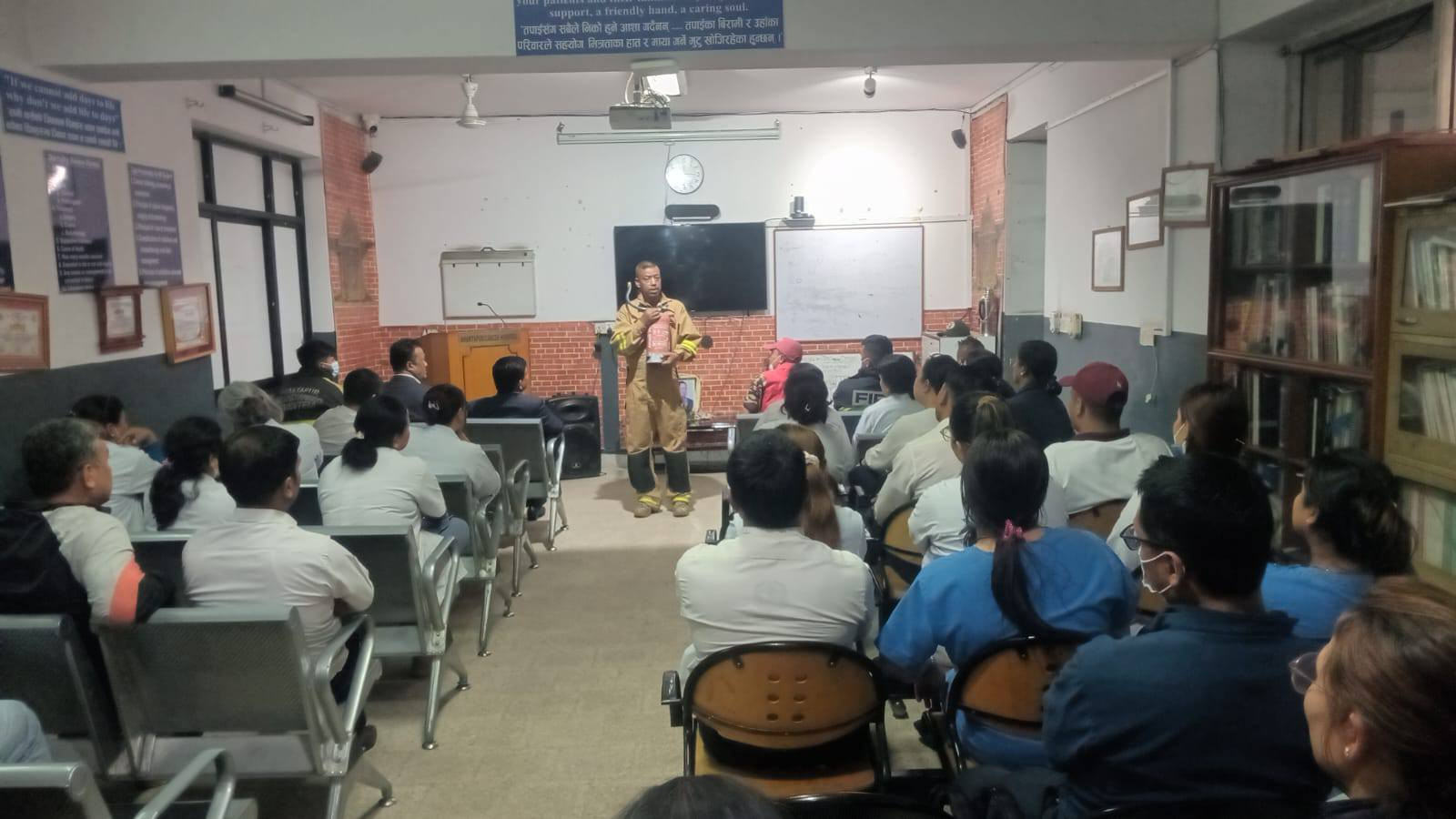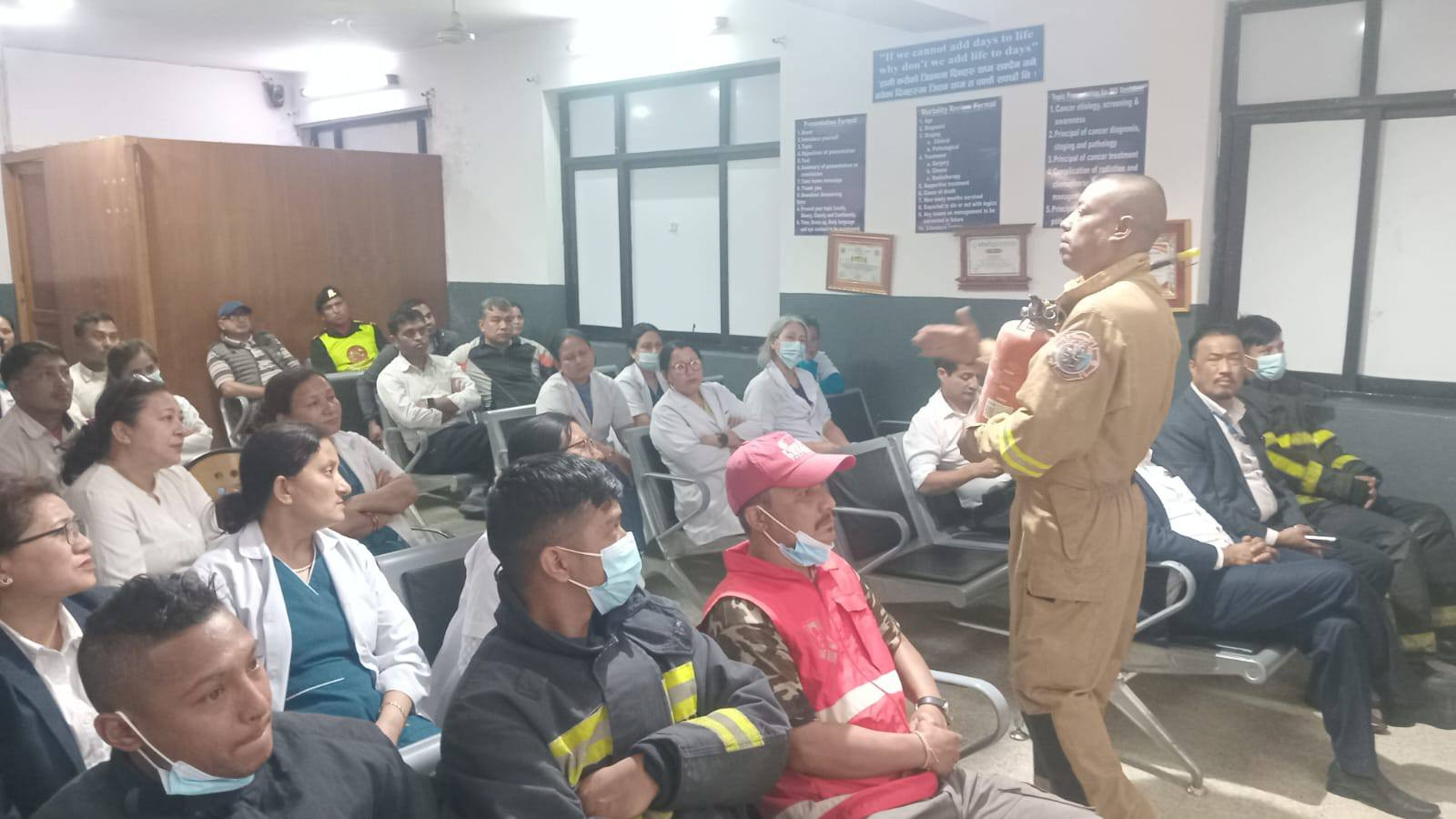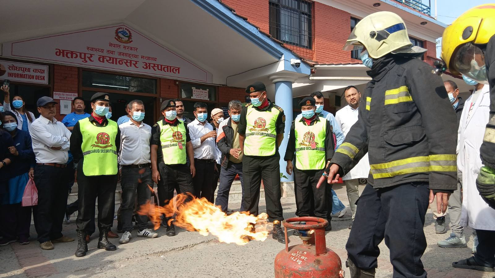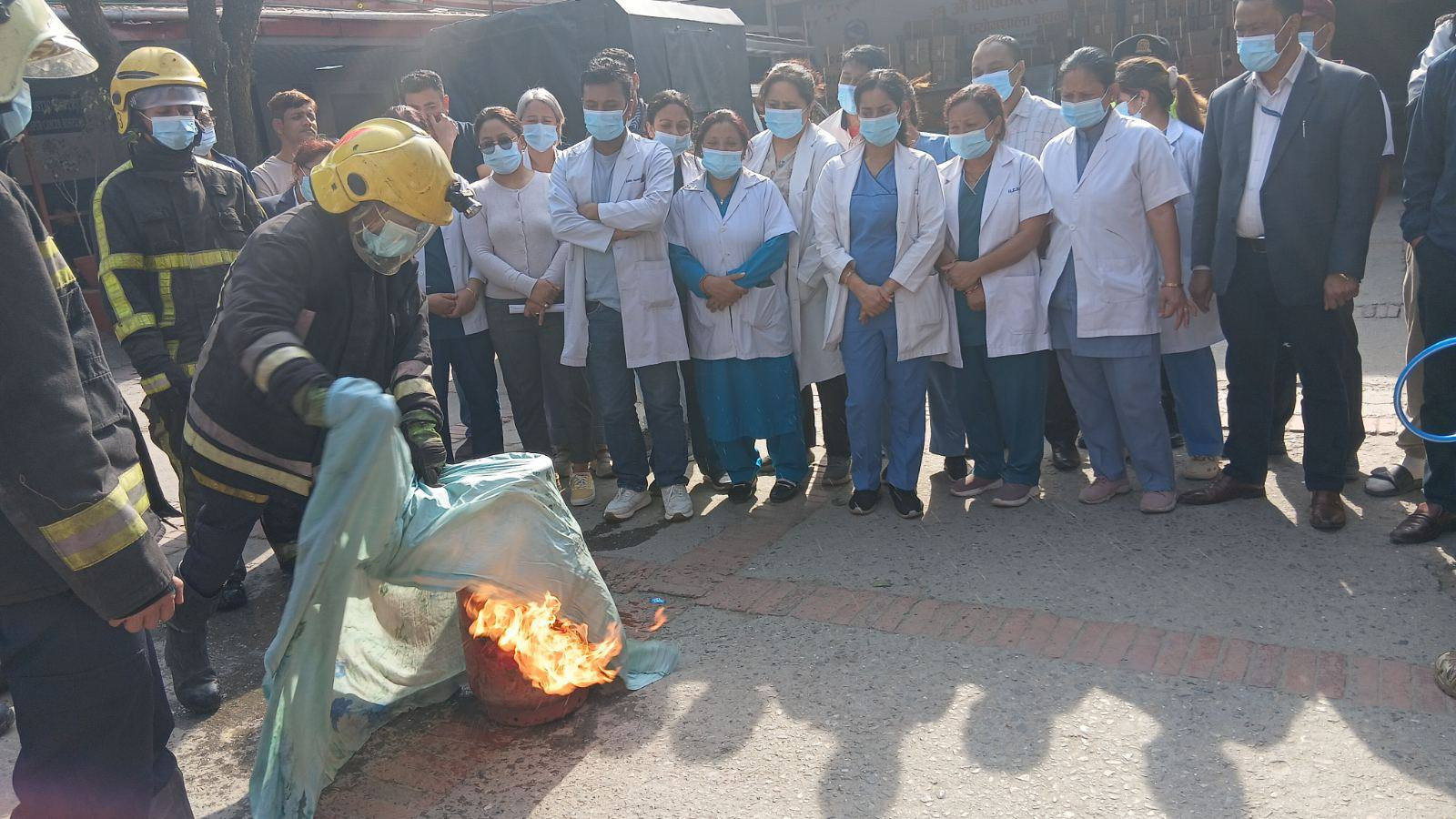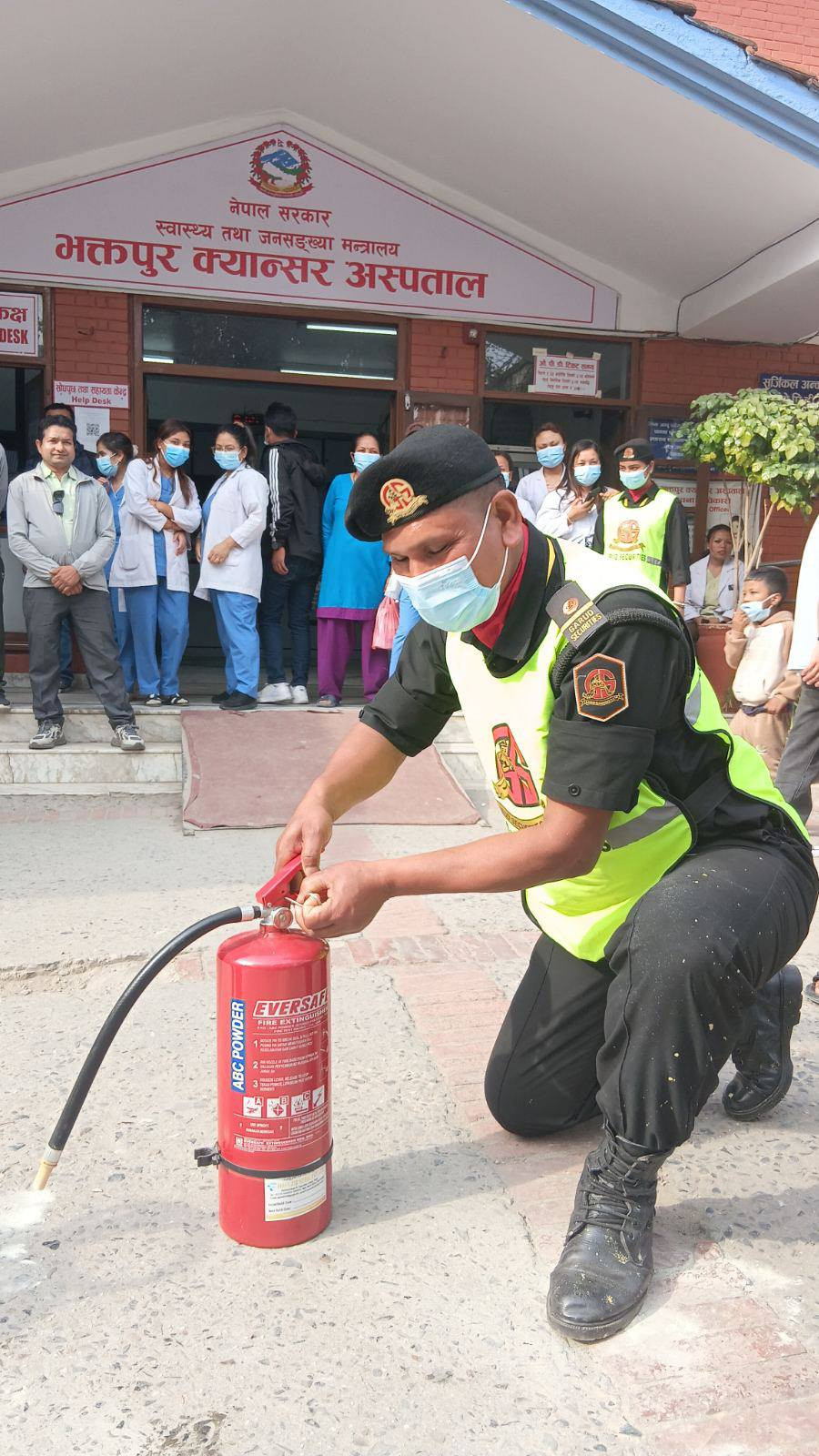 मिति २०८२/१२/२० गतेका दिन भक्तपुर क्यान्सर अस्पतालको आयोजना र जुद्ध बारुण यन्त्र कार्यालय भक्तपुरको प्राविधिक सहयोगमा आधारभूत आगलागी नियन्त्रणका उपायहरु तथा अपनाउनुपर्ने सावधानीहरुबारे सैद्धान्तिक कक्षा तथा प्रयोगात्मक अभ्यास प्रदर्शनी कार्यक्रम सम्पन्न गरियो ।