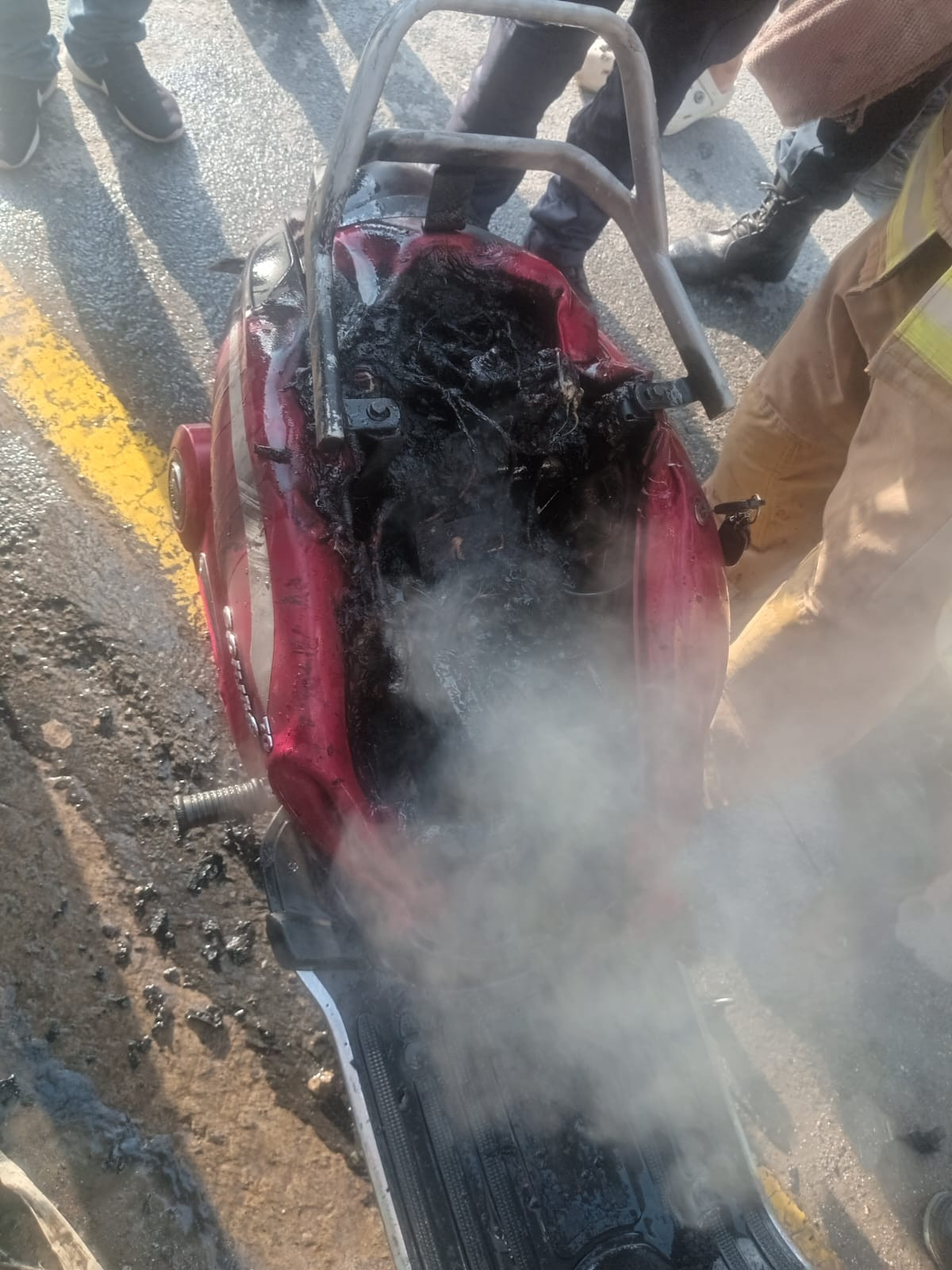 मिति २०८२/०४/०६ गते साँझ भक्तपुर जिल्ला मध्यपुर थिमी नगरपालिका वडा नं. ९ बोडे प्लानिङ एरियास्थित सरिता प्रजापतिको घरमा चार्जमा राखेको बा.प्र.०२-०३४प ३७२५ नम्बरको स्कुटरमा चार्ज गर्ने क्रममा अचानक आगलागी हुँदा सो स्कुटरको पछाडि रहेको सिट कभर सहित पछाडिको भाग जली क्षति भएको छ भने जुद्ध बारुण यन्त्र कार्यालय भक्तपुर दमकल समयमै पुगेर आगलागी नियन्त्रण गरी थप क्षतिबाट जोगाउन सफल भएको छ।