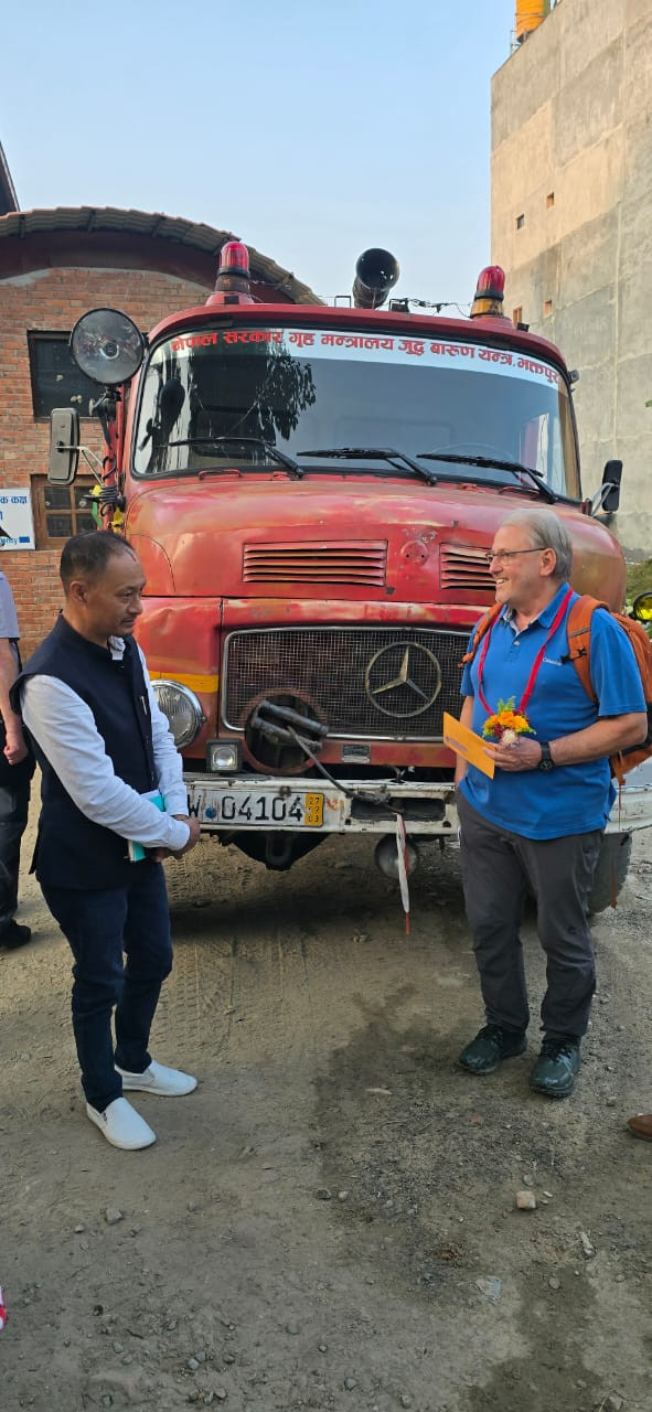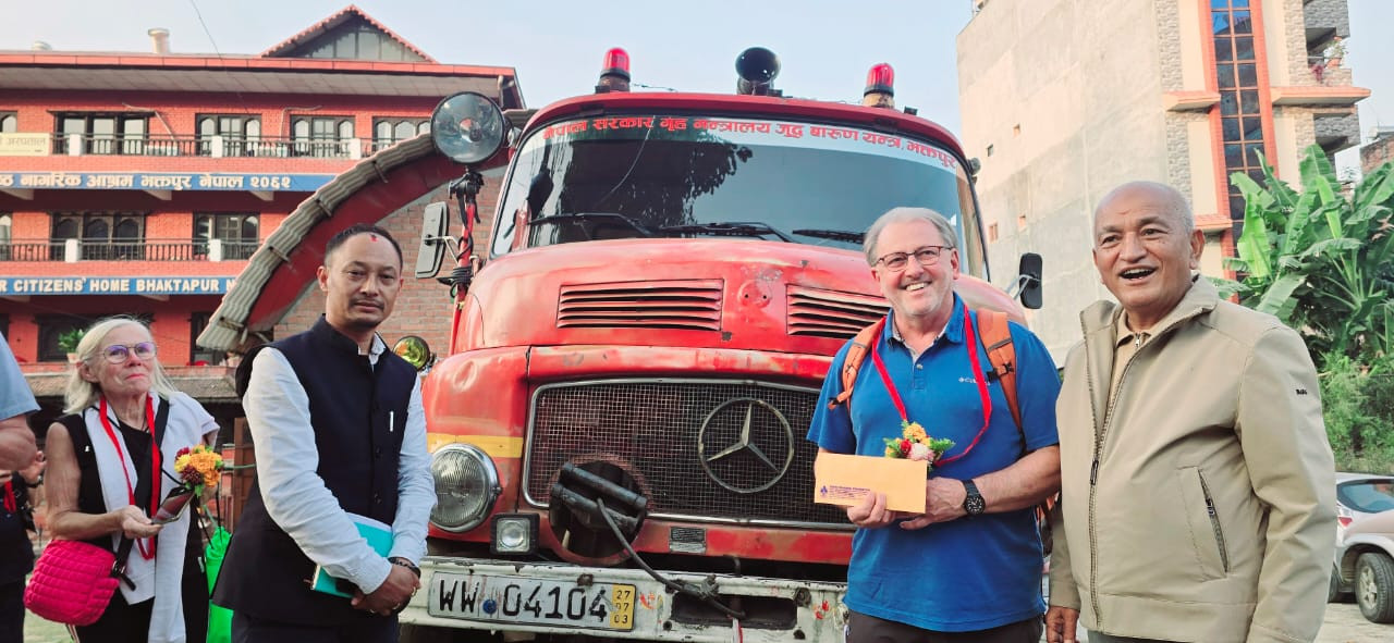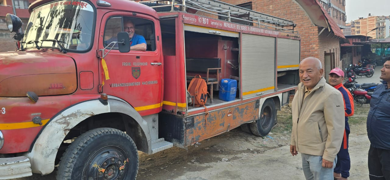 यस कार्यालयका कार्यालय प्रमुख श्री विजय प्रसाद धौभडेल ज्यूको सक्रियतामा भक्तपुर दमकलद्बारा संचालित भइरहेको जर्मन दमकलका सहयोगदाता एवं ह्यामबग शहरका पूर्व मेयर ज्यू सँग जुद्ध बारुण यन्त्र कार्यालय, भक्तपुर ले प्रदान गरिरहेको सेवा प्रवाह तथा दमकलको वर्तमान अवस्था आवश्यकताको विषयमा छलफल भइ सहयोगदाताबाट सकारात्मक प्रतिक्रिया प्राप्त भएको छ।