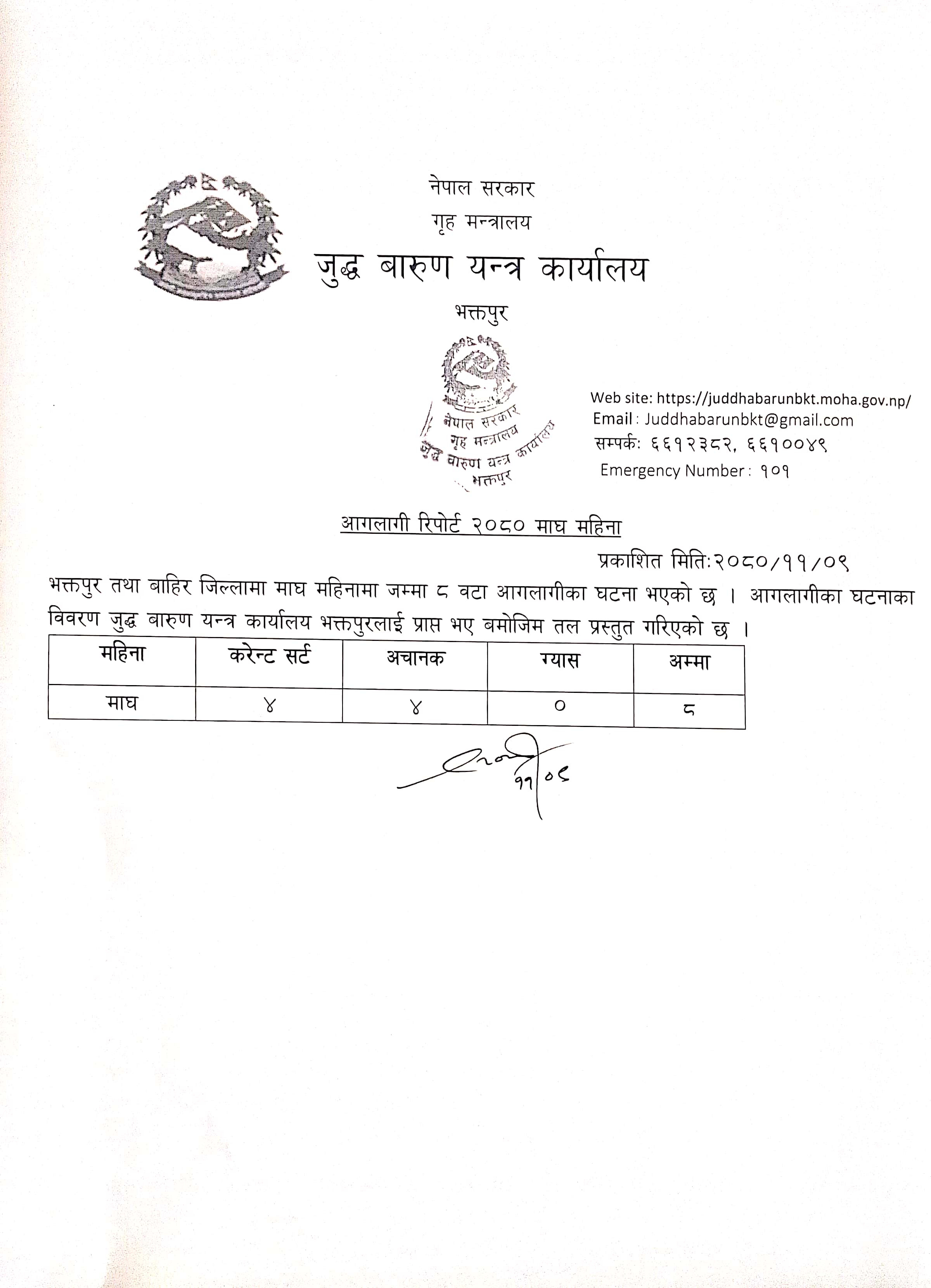 २०८० माघ महिनामा भएको आगलागी विवरण