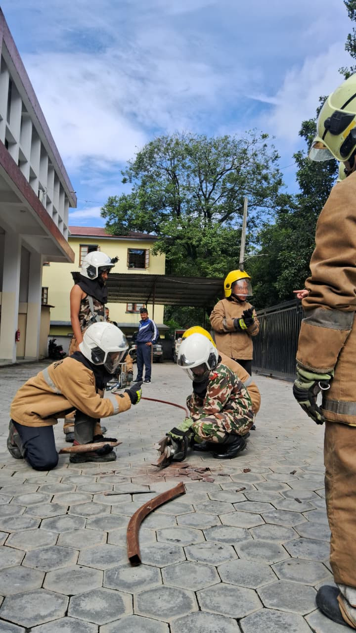 मिति २०८२/०५/१५ गतेका दिन जुद्ध बारुण यन्त्र कार्यालय परिसरमा कार्यालयका अग्निनियन्त्रक कर्मचारीहरुद्वारा हाइड्रोलिक कटर, हाइड्रो स्पेडर र हाइड्रोलिक र्यामबाट उद्धार गर्ने विधिसम्बन्धी नियमित आन्तरिक पुनर्ताजगी अभ्यास (Internal Refreshment Training) सम्पन्न गरियो।