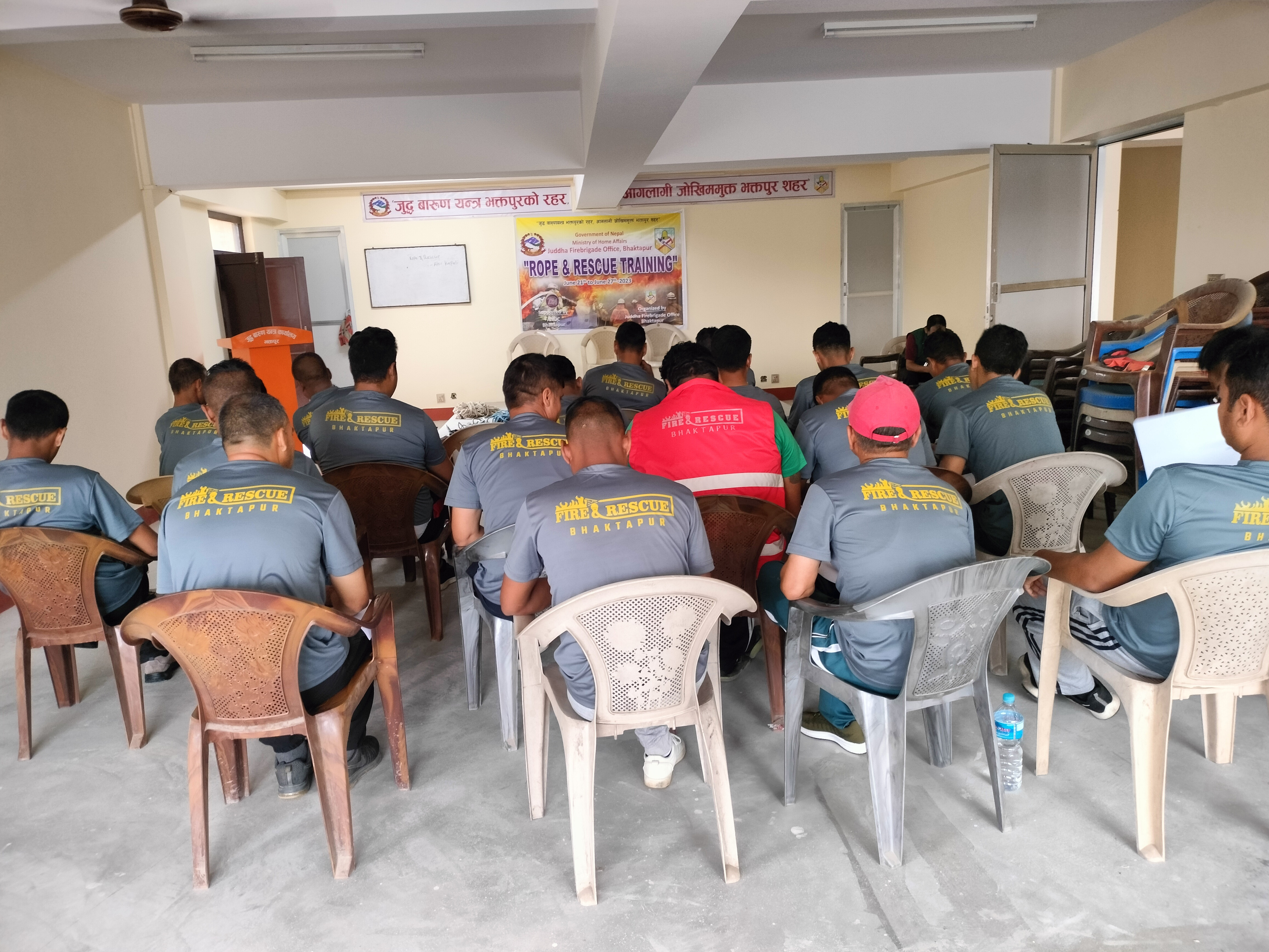 कार्यालयमा कार्यरत रहेका अग्नि नियन्त्रण तर्फका कर्मचारीहरुलाइ राेप, इनारमा खसेका मानिसहरुकाे उद्दार तथा अग्नि नियन्त्रण सम्बन्धि तालिमकाे आज उद्घाटन सत्र सम्पन्न गरियाे । मिति २०८०-०३-०७ गते ।
