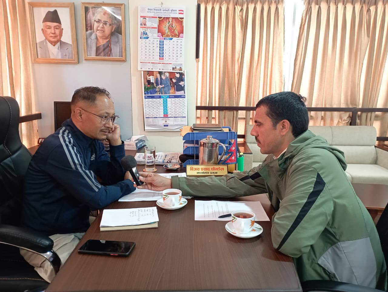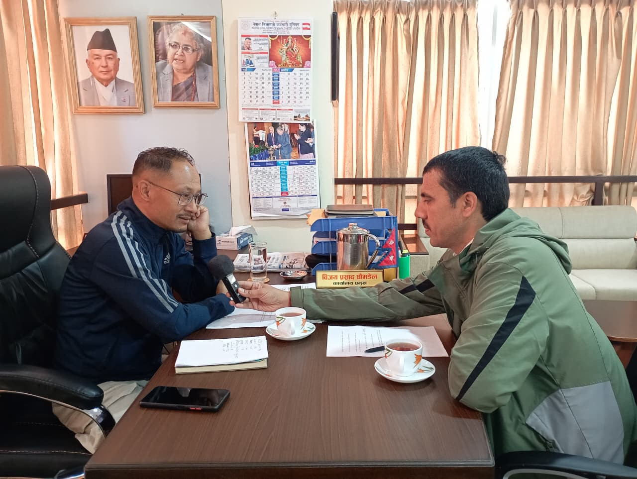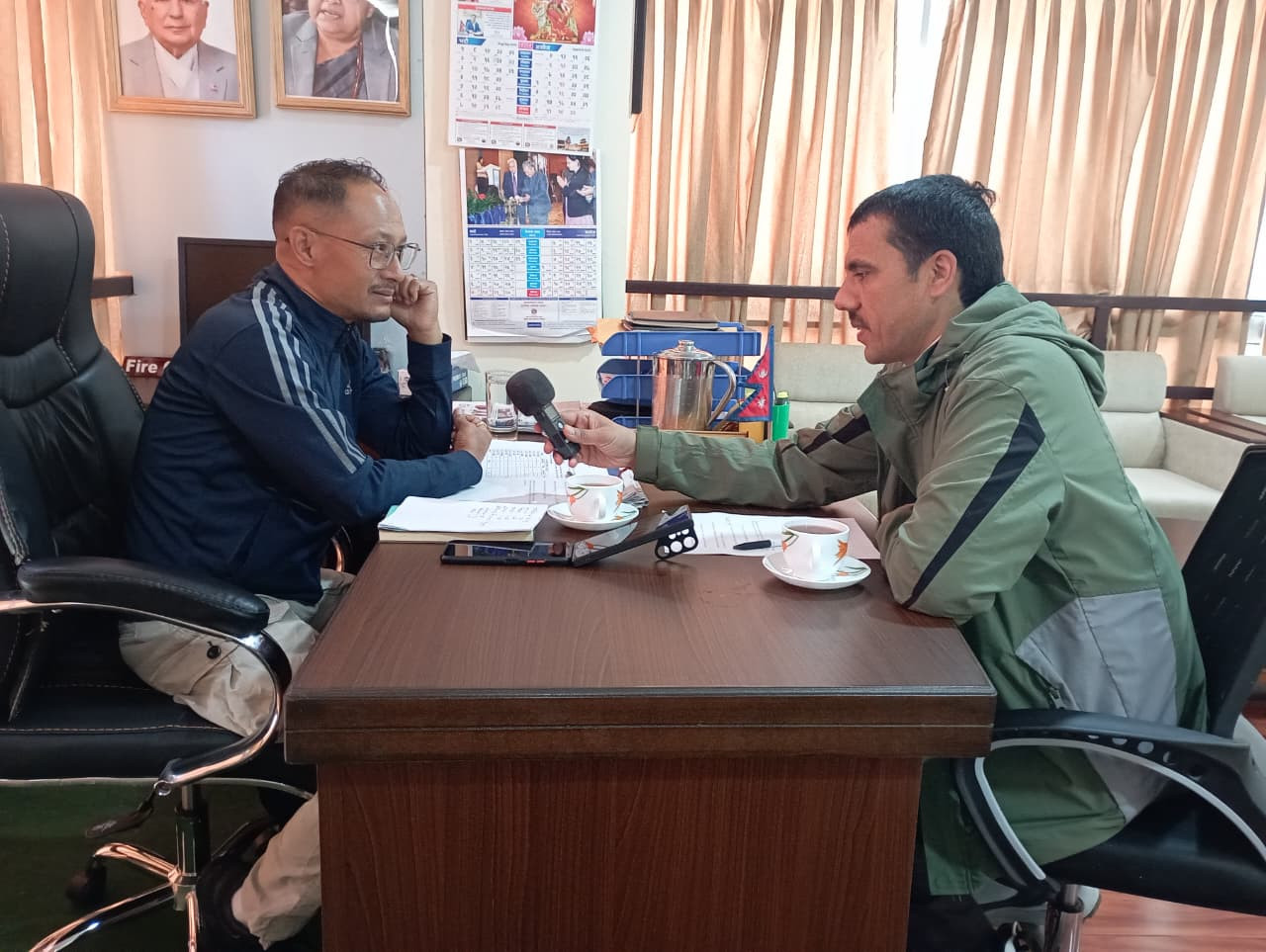 मिति २०८२/०६/३१ गतेका दिन शिखर एफ. एम. १०२.७ मेघाहर्ज भक्तपुरका पत्रकार श्री कृष्ण नेपाल ज्यू सँगको रेडियो अन्तर्वार्तामा नेपालीहरुको आउँदै गरेको महान चाड दिपावलीमा हुन सक्ने सम्भावित आगलागीका कारणहरु र रोकथामका उपायहरु सम्बन्धी सचेतनामूलक जानकारी प्रदान गर्नुहँदै कार्यालय प्रमुख श्री विजय प्रसाद धौभडेल ज्यू ।