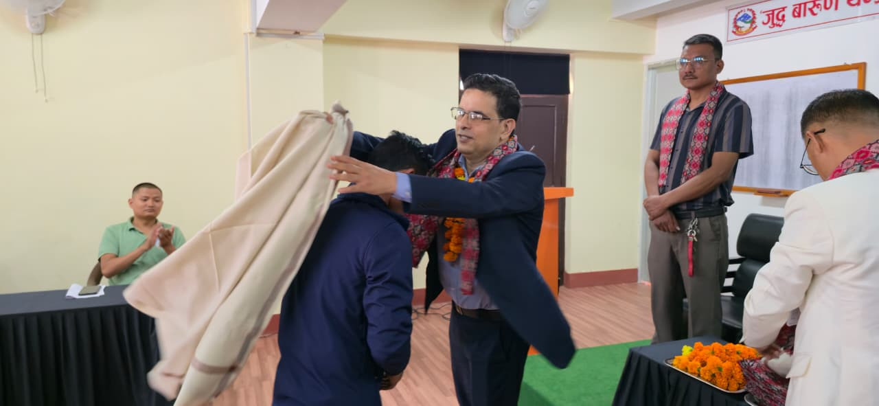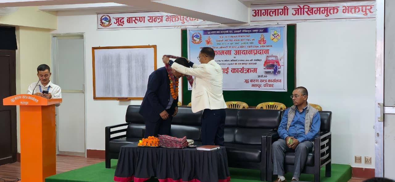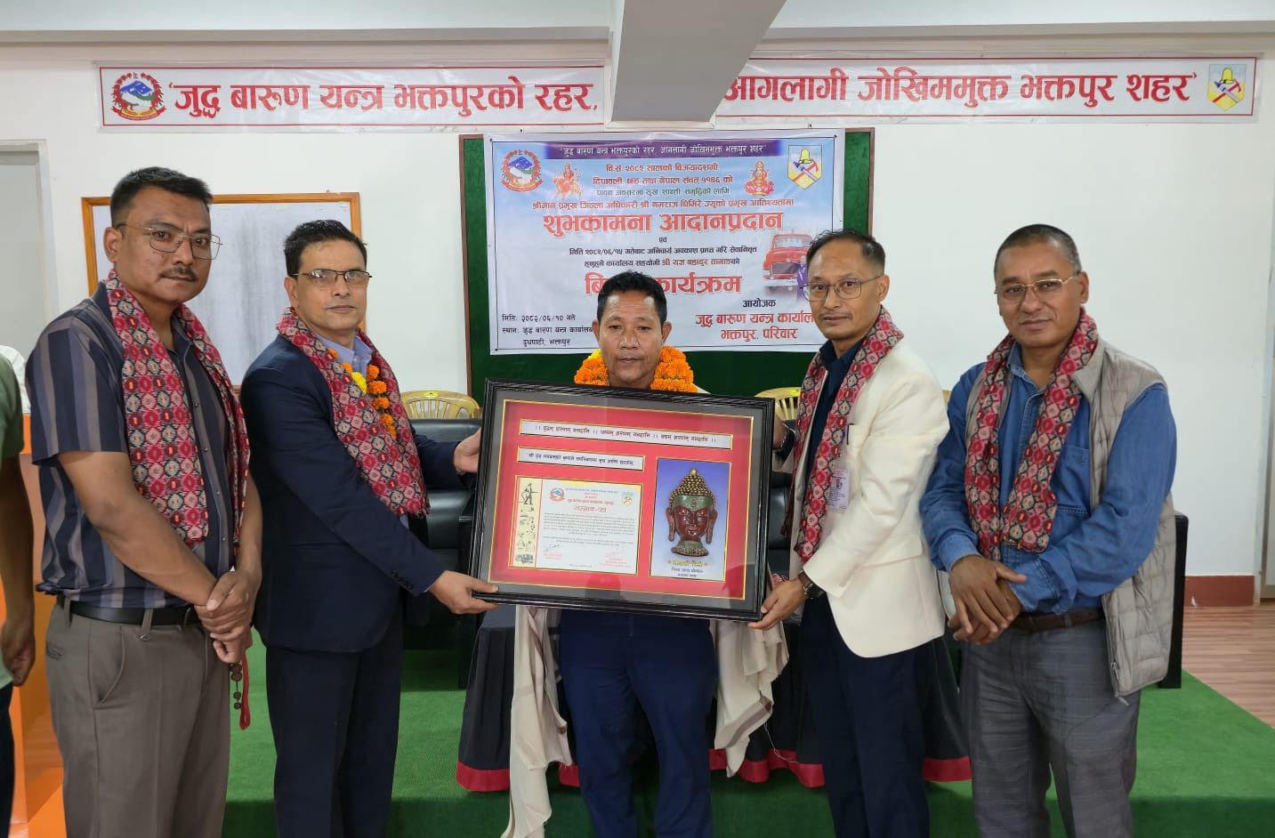मिति २०८२/०६/१० गतेका दिन जुद्ध बारुण यन्त्र कार्यालय भक्तपुरको आयोजनामा कार्यालय प्रमुख श्री विजय प्रसाद धौभडेल ज्यूको सभाध्यक्षतामा, श्रीमान् प्रमुख जिल्ला अधिकारी श्री नमराज घिमिरे ज्यूको प्रमुख आतिथ्यतामा, अतिथि नेपाल पत्रकार महासंघ जिल्ला शाखा भक्तपुरका अध्यक्ष श्री सुन्दर शिल्पकार ज्यू, अतिथि रासस पत्रकार श्री रमेश गिरी ज्यू तथा कार्यालयका सम्पूर्ण कर्मचारीहरुको उपस्थितिमा वि.सं. २०८२ सालको विजयादशमी, दिपावली, छ्ठ तथा नेपाल संवत् ११४६ को पावन अवसरमा सुख, शान्ति र समृद्धिको लागि शुभकामना आदानप्रदान एवं मिति २०८२/०६/१५ गतेबाट अनिवार्य अवकास प्राप्त गरि सेवानिवृत्त हुनुहुने कार्यालय सहयोग श्री यज्ञ बहादुर तामाङ ज्यूको बिदाई कार्यक्रम सम्पन्न गरियो। साथै, श्रीमान् प्रमुख जिल्ला अधिकारी श्रीमान् नमराज घिमिरे ज्यूले कार्यालयको अनुगमन निरीक्षण गर्नुभै महत्त्वपूर्ण निर्देशन, सल्लाहसुझाव तथा सहयोगको आश्वासन प्रदान गर्नुभएको छ ।