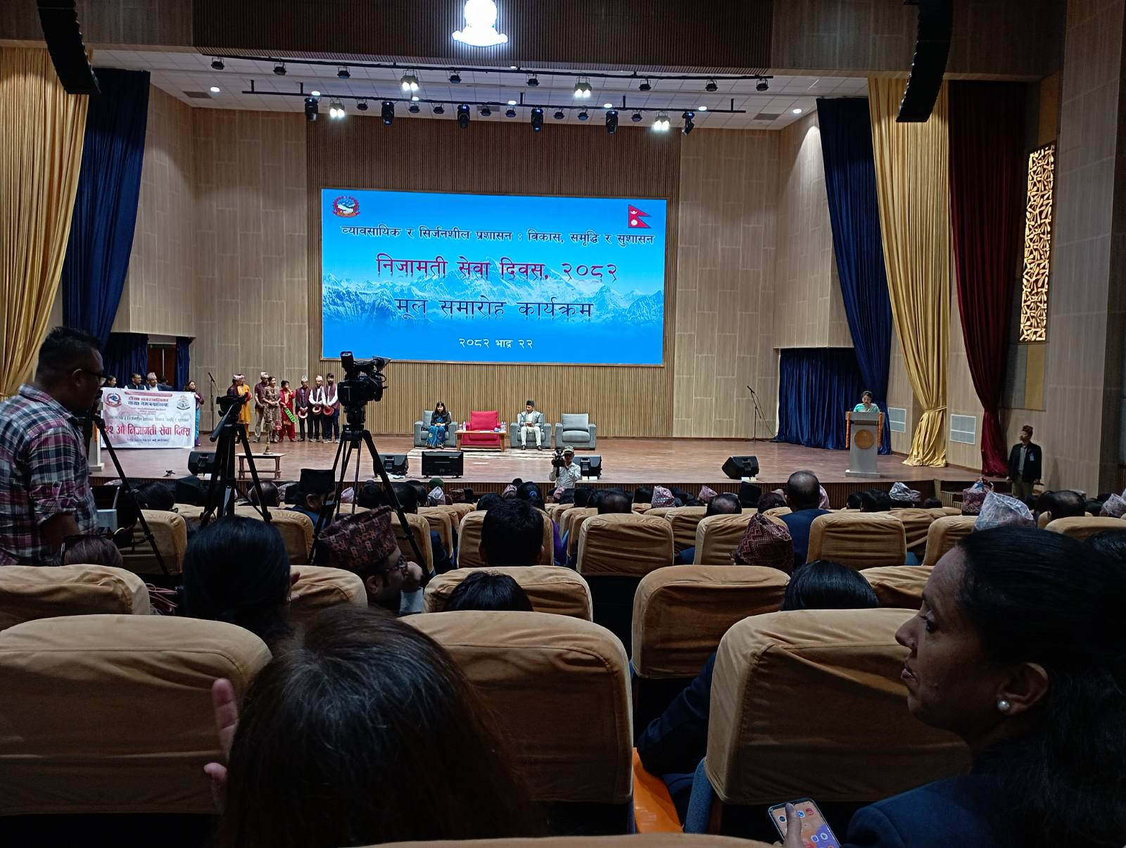 मिति २०८२/०५/२२ गतेका दिन “२२ औँ निजामती सेवा” दिवसको अवसरमा 'व्यावसायिक र सिर्जनशील प्रशासन: विकास, समृद्धि र सुशासन' भन्ने मुल नाराका साथ बिहान निजामती सेवा दिवस मूल समारोह- २०८२ द्वारा सिंहदरबारदेखि नेपाल पुलिस क्लब भृकुटीमण्डपसम्मको र्याली तथा मूल कार्यक्रममा सहभागी भई सन्ध्यामा जुद्ध बारुण यन्त्र कार्यालय परिसरमा दिप प्रज्जवलन कार्यक्रम सम्पन्न गरियो।