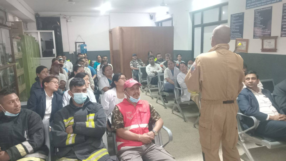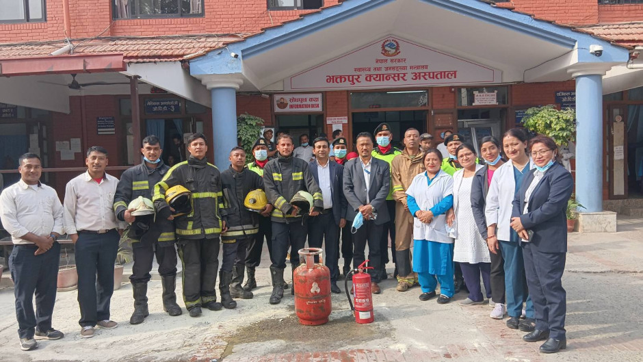 मिति २०८२/१२/२० गतेका दिन भक्तपुर क्यान्सर अस्पतालको आयोजना र जुद्ध बारुण यन्त्र कार्यालय भक्तपुरको प्राविधिक सहयोगमा आधारभूत आगलागी नियन्त्रणका उपायहरु तथा अपनाउनुपर्ने सावधानीहरुबारे सैद्धान्तिक कक्षा तथा प्रयोगात्मक अभ्यास प्रदर्शनी कार्यक्रम सम्पन्न गरियो ।