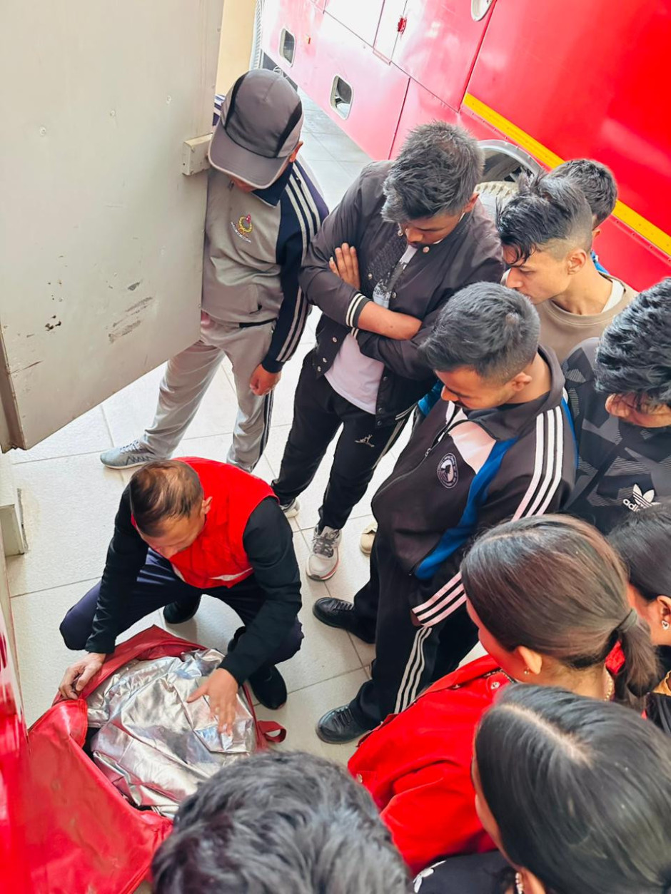 मिति २०८२/१२/२३ गतेका दिन जुद्ध बारुण यन्त्र कार्यालय, भक्तपुर को आयोजनामा संचालित "८ दिने आधारभूत अग्नि नियन्त्रण सम्बन्धी तालिम" को दोस्रो दिन पाल्नुभएका प्रशिक्षक श्री चिरञ्जिवि भण्डारी सर र प्रशिक्षक श्री अरुण कुमार आचार्य सरबाट श्वास प्रस्वास संयन्त्र सम्बन्धी सैद्धान्तिक र होज , दमकल तथा अग्नि निवारक सामाग्री प्रयोगात्मक तालीम प्रदान कार्यक्रम सम्पन्न गरियो।