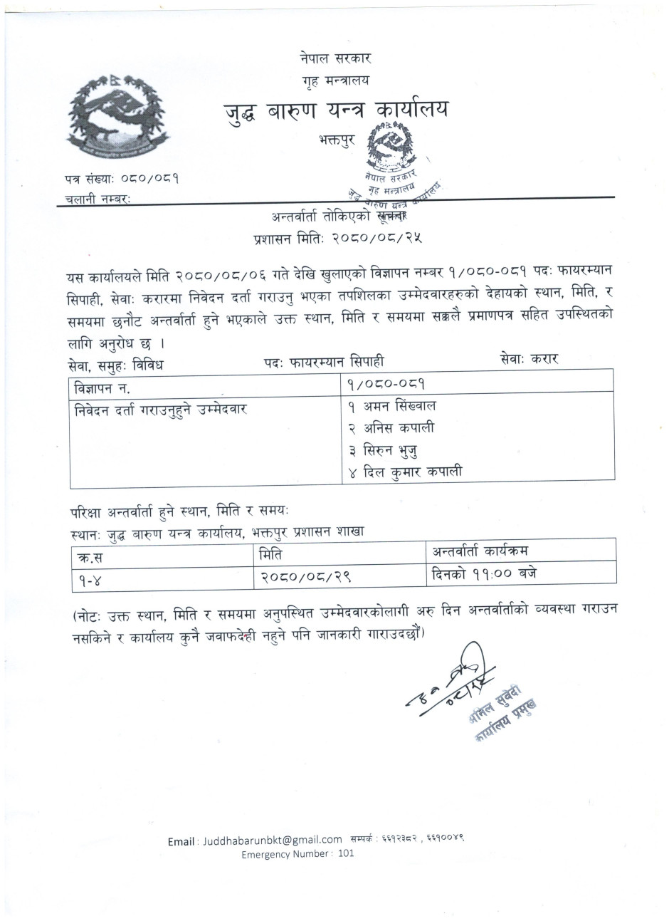 © सर्वाधिकार सुरक्षित जुद्ध बारुण यन्त्र कार्यालय भक्तपुर