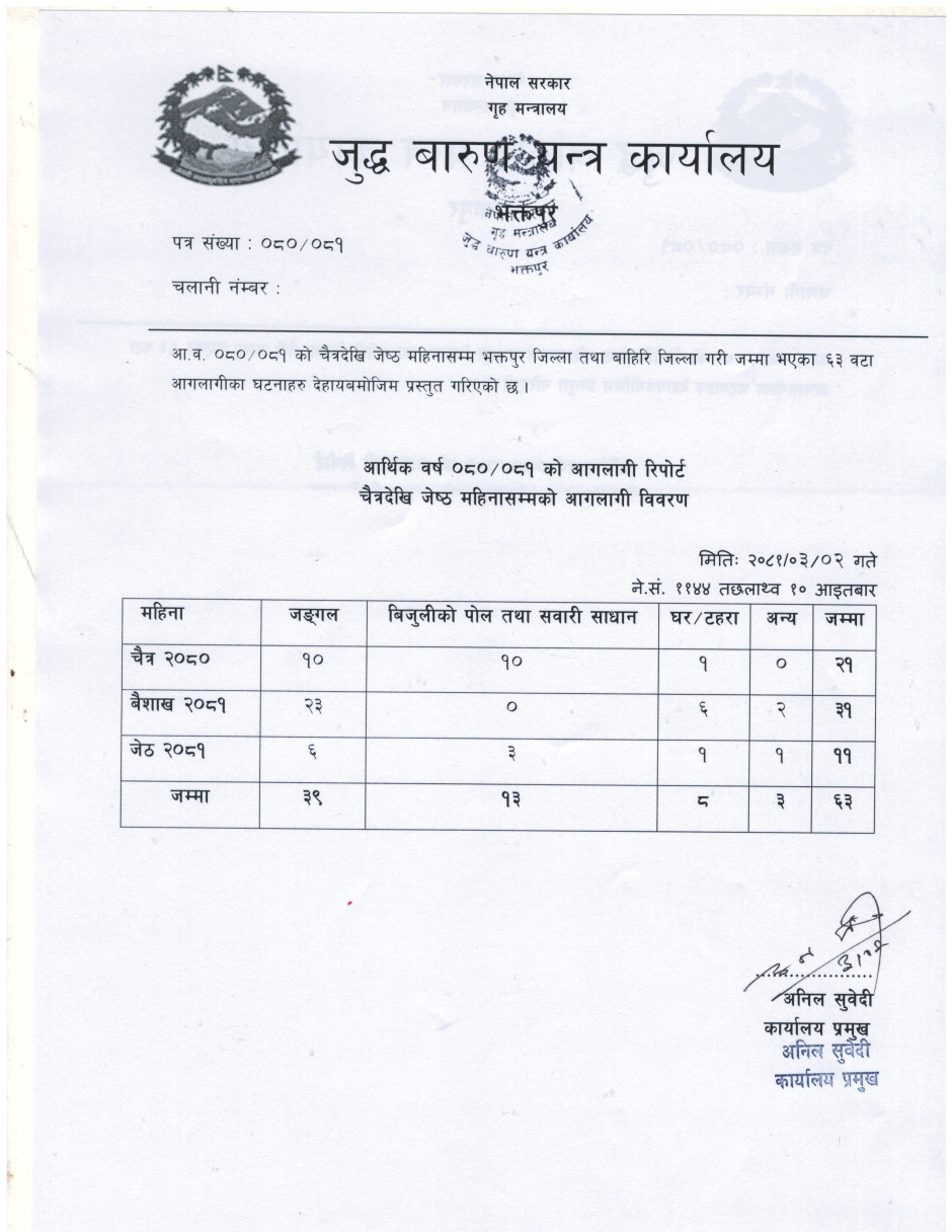 २०८० चैत्रदेखि २०८१ जेष्ठ महिनासम्मको आगलागी विवरण