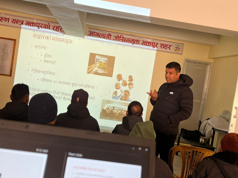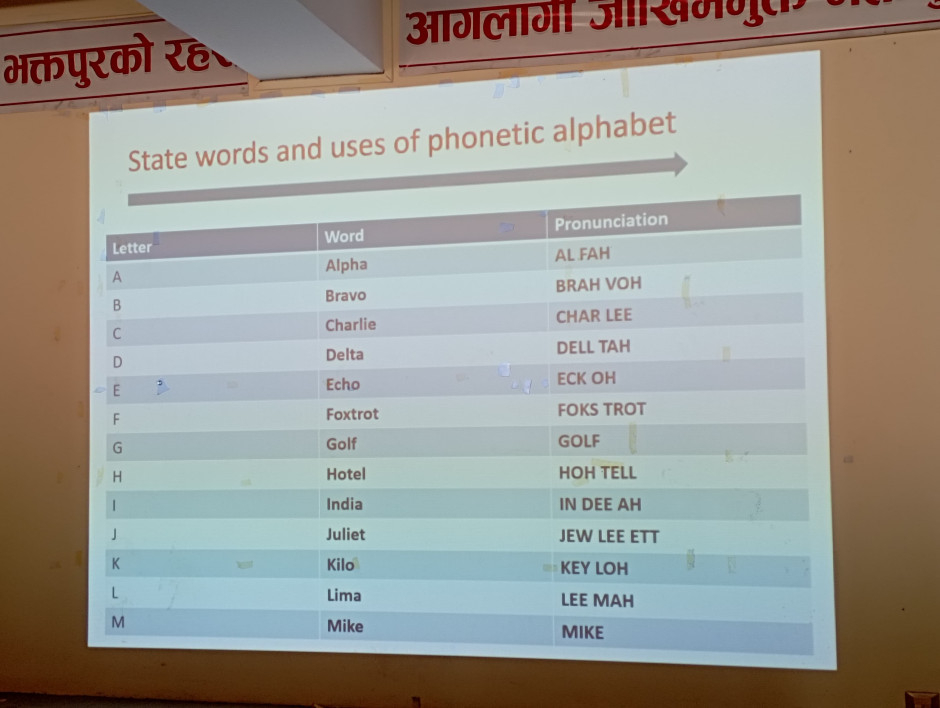 आज मिति २०८१/१०/०८ गतेका दिन जुद्ध बारुण यन्त्र कार्यालय भक्तपुरको आयोजना तथा नेपाल रेस्क्यु एण्ड फायरफाइटर एशोसिएसन (NRFFA KTM) को प्राविधिक सहयोगमा प्रशिक्षकद्वय श्री मधुसुदन थापा र श्री सोनी फाजुज्यू बाट फायर स्टेशन कम्युनिकेशन सेशन (Fire Station Communication Session) कार्यक्रम सम्पन्न गरिएको छ।