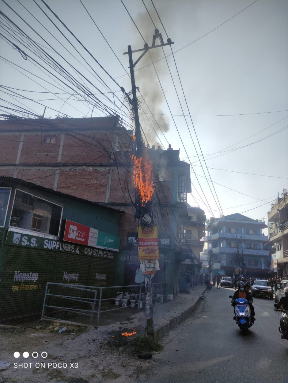 मिति २०८२/०७/०१ गते बिहान भक्तपुर जिल्ला सूर्यविनायक नगरपालिका वडा नं. ४ हर्षचोक स्थित बिजुलीको पोलमा करेन्ट सर्ट भै आगलागी हुँदा बिजुलीका तारहरु जलेर क्षति भएको छ भने जुद्ध बारुण यन्त्र कार्यालय भक्तपुरको दमकल समयमै पुगेर सो आगलागी नियन्त्रण गरि थप क्षति हुनबाट जोगाउन सफल भएको छ ।