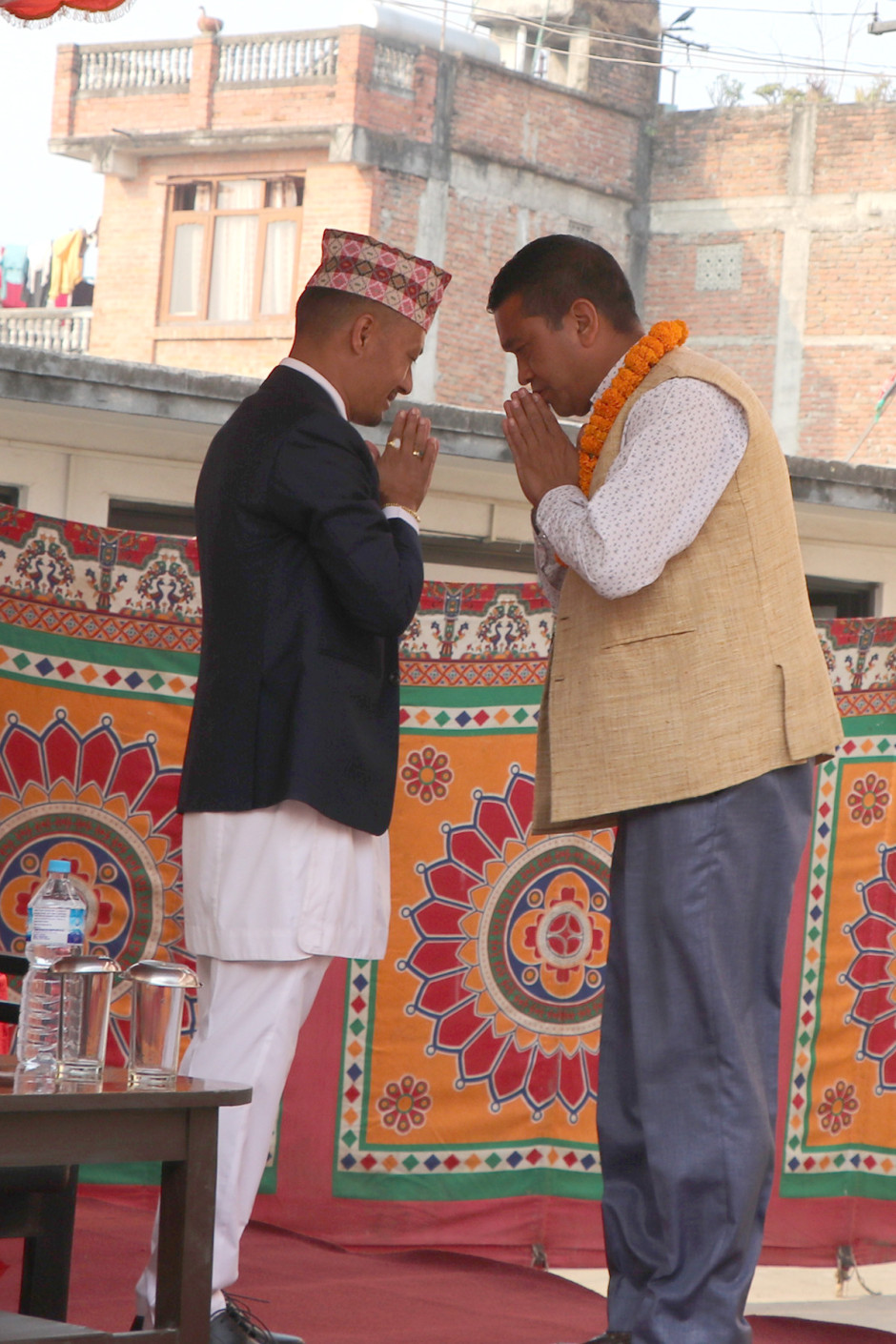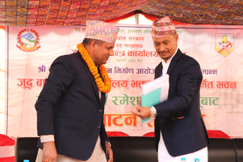 मिति २०८१ चैत्र १३ गतेका दिन प्रमुख जिल्ला अधिकारी श्रीमान् गोपालप्रसाद अर्यालज्यूको सभापतित्व, माननीय गृहमन्त्री रमेश लेखकज्यूको प्रमुख आतिथ्यता, कार्यालय प्रमुख श्री विजय प्रसाद धौभडेलज्यूको स्वागत मन्तव्य सँगै विशेष अतिथिज्यूहरु संघीय सांसद माननीय दुर्लभ थापाज्यू, संघीय सांसद माननीय प्रेम सुवालज्यू, बागमती प्रदेश स्वास्थ्य मन्त्री माननीय किरण थापाज्यू, बागमती प्रदेश सभा सदस्य माननीय सुरेश श्रेष्ठज्यू, जि.स.स. भक्तपुर प्रमुख श्री ईश्वर बहादुर थापाज्यू, गृहसचिव श्रीमान् गोकर्णमणि दुवाडीज्यू, चाँगुनारायण नगर प्रमुख श्री जीवन खत्रीज्यू, भक्तपुर नगर प्रमुख श्री सुनिल प्रजापतिज्यू, मध्यपुर थिमी नगर प्रमुख श्री सुरेन्द्र श्रेष्ठज्यू, सूर्यविनायक नगर प्रमुख श्री बासुदेव थापाज्यू, अतिथिज्यूहरु माननीय गृहमन्त्रीज्यूका स्वकीय सचिव श्री बद्री तिवारीज्यू, नेपाली सेना इन्द्र बक्स गण सूर्यविनायक भक्तपुर प्रमुख श्री मोहन कुमार थापाज्यू, जिल्ला प्रहरी कार्यालय भक्तपुरका प्रमुख श्री माधव प्रसाद बुढाथोकीज्यू, सशस्त्र प्रहरी बल २२ नं. गण प्रमुख श्री जनक सापकोटाज्यू, राष्ट्रिय अनुसन्धान कार्यालय भक्तपुर प्रमुख श्री टेकराज तिमिल्सिनाज्यू, को.ले.नि.का. भक्तपुर प्रमुख श्री महेश कुमार दाहालज्यू, संघीय सहरी तथा भवन निर्माण कार्यालय बबरमहल आयोजना प्रमुख श्री रमेश थपलियाज्यू, जि.स.स. भक्तपुर पूर्व प्रमुख श्री नवराज गेलालज्यू, सैनिक आवासीय महाविद्यालय प्रमुख श्री अशोक बहादुर चन्दज्यू, पूर्व कार्यालय प्रमुखज्यूहरु श्री माधव सिग्देलज्यू, श्री रामकुमार लम्सालज्यू, श्री राजन दाहालज्यू, श्री सुरज निरौलाज्यू, श्री लोक बहादुर कार्कीज्यू, श्री अनिल सुवेदीज्यू, नेपाल पत्रकार महासंघ भक्तपुरका अध्यक्ष श्री सुन्दर शिल्पकारज्यू, सम्मानित पत्रकारज्यूहरु श्री रमेश गिरीज्यू, श्री पेशल आचार्यज्यू, श्री पुष्कर बुढाथोकीज्यू, श्री लिला श्रेष्ठज्यू, नेपाल रेडक्रस सोसाइटी जिल्ला शाखा भक्तपुरका अध्यक्ष श्री पर्शुराम पाण्डेज्यू, सिद्धी स्मृति हस्पिटलका संस्थापक अध्यक्ष श्री श्यामसुन्दर धौभडेलज्यू, रोटरी क्लब काठमाडौं सर्कलका अध्यक्ष श्री नुगल आनन्द वैद्यज्यू, नेपाल रेस्क्यु एण्ड फायर फाइटर एशोसियसन (NRFFA) अध्यक्ष श्री मधुसूदन थापाज्यू लगायत त्रि.अ.वि.ना.उ.का. गौचर काठमाडौंकाबाट अग्नि नियन्त्रक प्रशिक्षकज्यूहरु श्री चिरञ्जीवी भण्डारीज्यू, श्री मनोज कुमार भुजेलज्यू, श्री रती ढुंगानाज्यू, श्री सुनिल गौतमज्यू, श्री अरुण कुमार आचार्यज्यू, गृह मन्त्रालय मातहतका तत्कालीन जुद्ध बारुण यन्त्र कार्यालय भक्तपुर, ललितपुर र काठमाडौंमा रहि सेवा दिनुभएका भुपू कर्