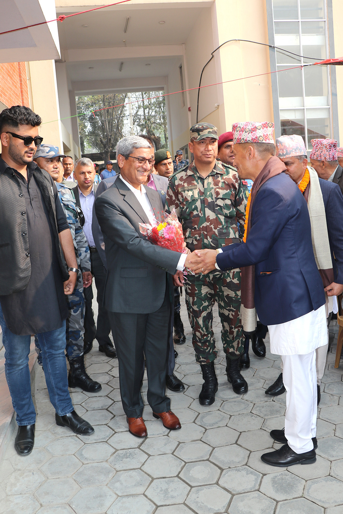 माननीय गृहमन्त्री रमेश लेखक ज्यूबाट नवनिर्मित भवन समुद्घाटन।