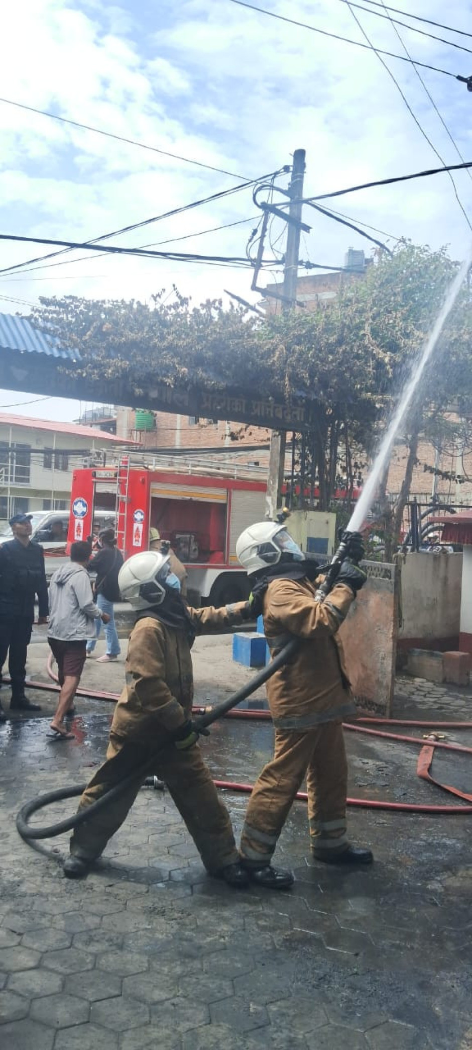 मध्यपुर थिमि नगरपालिका स्थित प्रहरी वृत्त, ठिमि भक्तपुरमा भएको आगलागी नियन्त्रण।