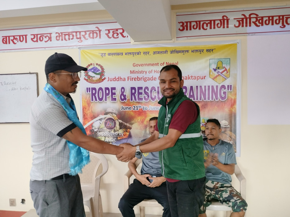 कार्यालयमा कार्यरत रहेका अग्नि नियन्त्रण तर्फका कर्मचारीहरुलाइ राेप, इनारमा खसेका मानिसहरुकाे उद्दार तथा अग्नि नियन्त्रण सम्बन्धि तालिमकाे आज उद्घाटन सत्र सम्पन्न गरियाे । मिति २०८०-०३-०७ गते ।