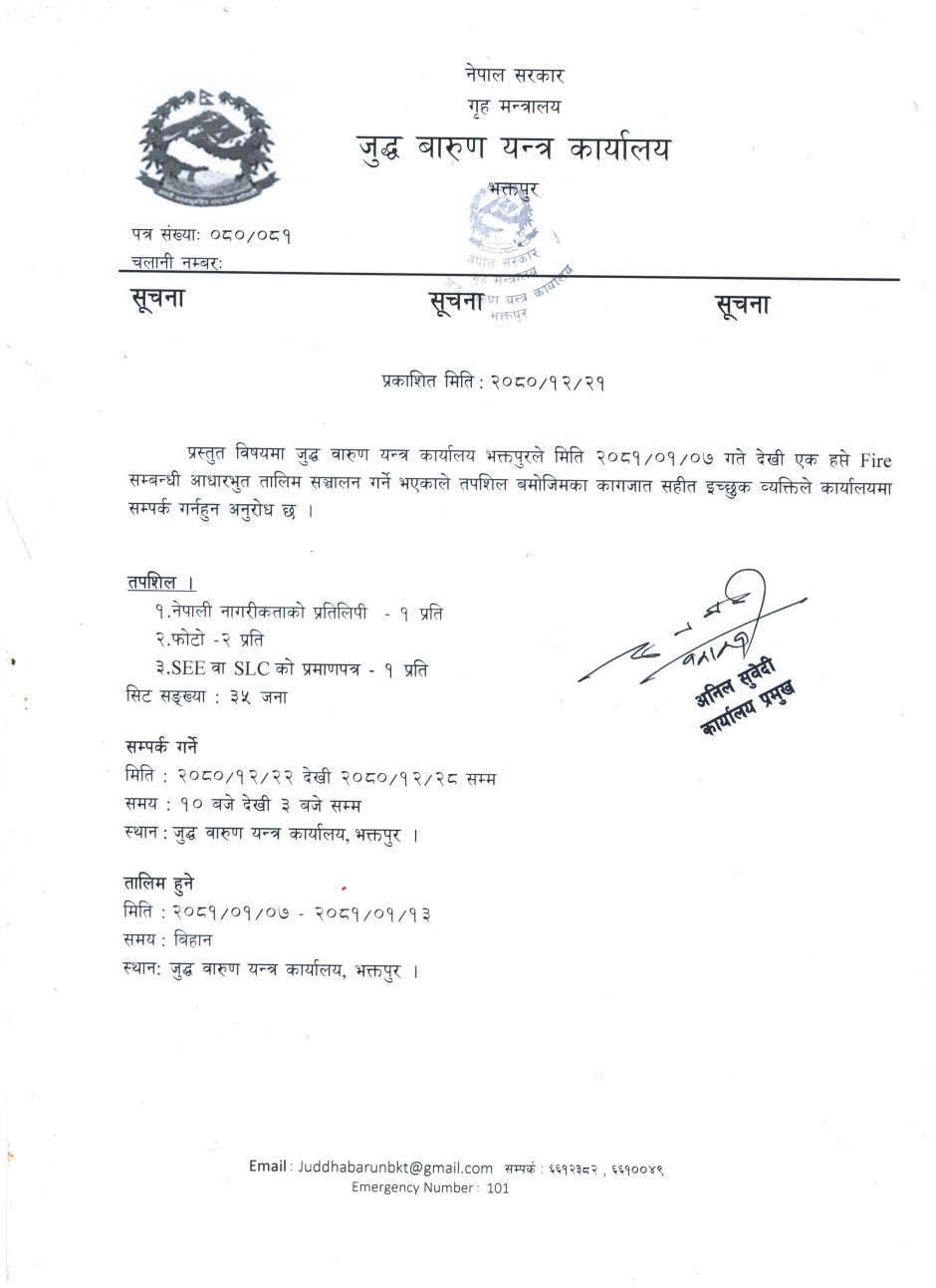 © सर्वाधिकार सुरक्षित जुद्ध बारुण यन्त्र कार्यालय भक्तपुर .