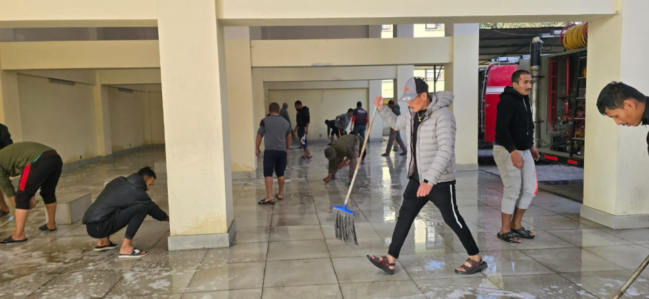 कार्यालयको नियमित सरसफाइ कार्यमा अग्नि नियन्त्रक कर्मचारी ज्यूहरु ।