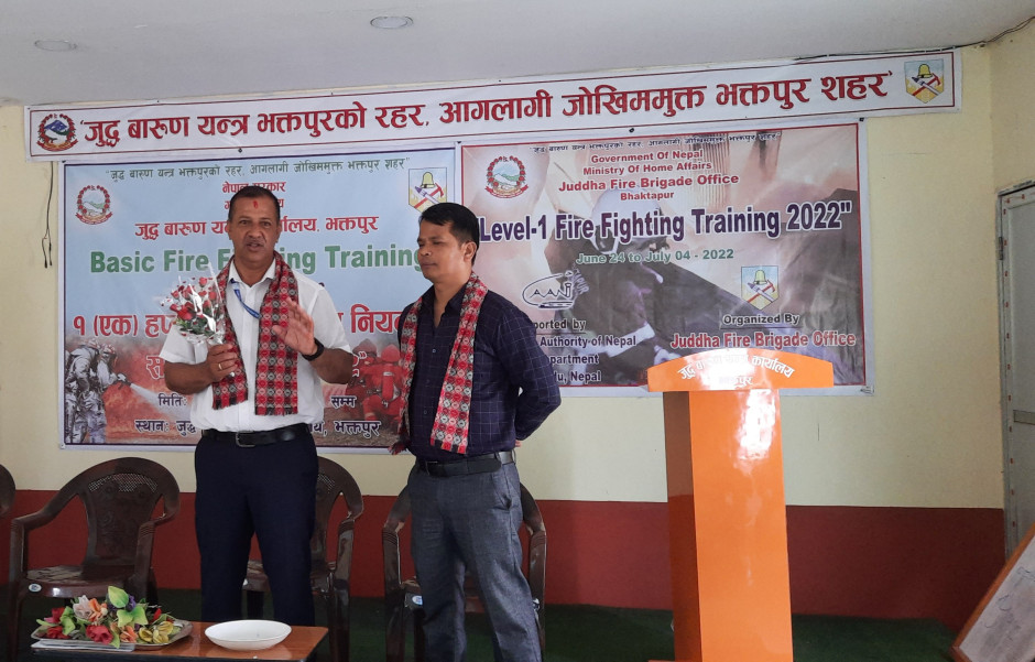"Level 1 Fire Fighting Trainning 2022" Organize By Juddha Fire Brigade Office Bhaktapur. Supported By Civil Avation Authority of Nepal ARFF Department Kathmandu Nepal. Day 5.