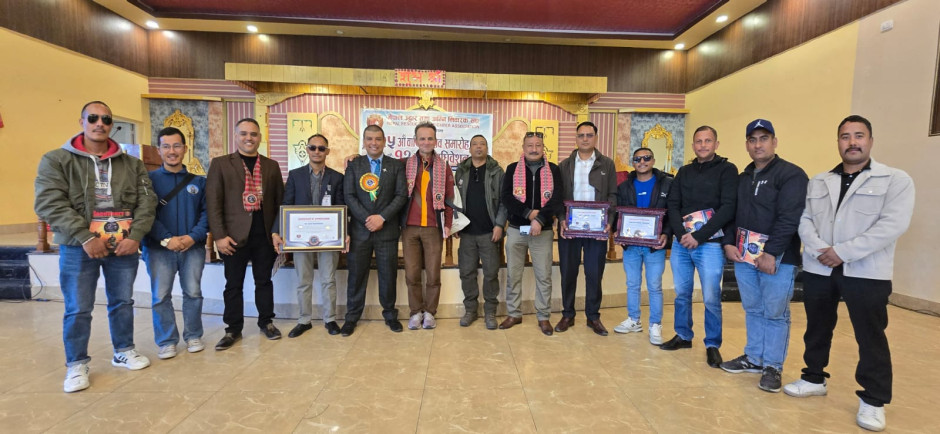 उत्कृष्ट अग्निनियन्त्रण सेवाप्रवाहका लागि कार्यालय प्रमुख श्री विजय प्रसाद धौभडेल ज्यूलाई NRFFA द्वारा सम्मान