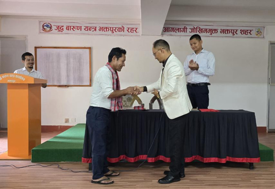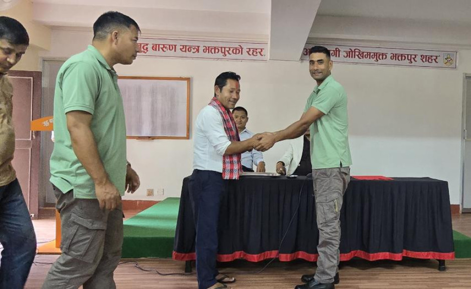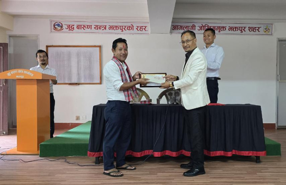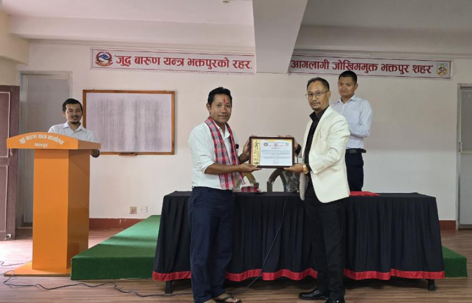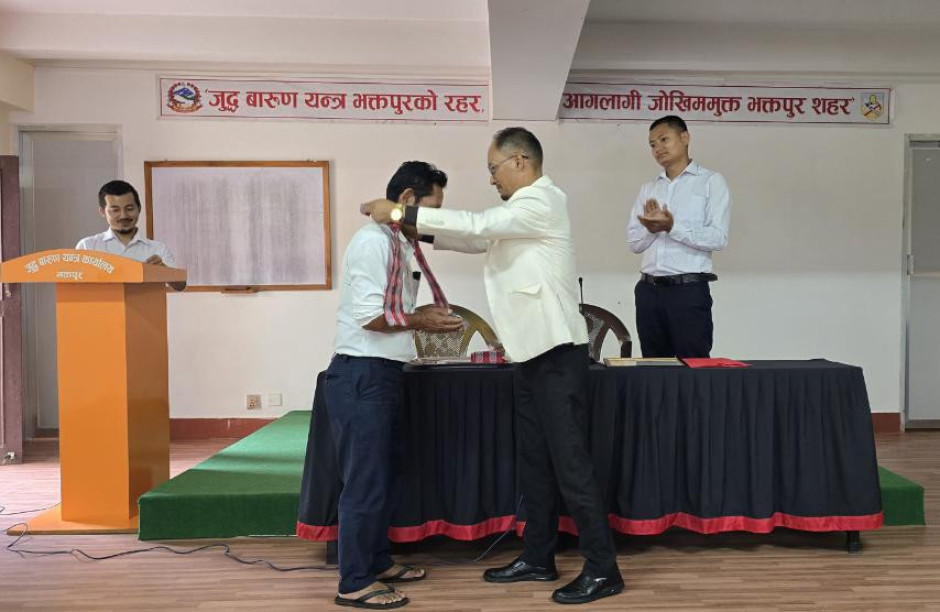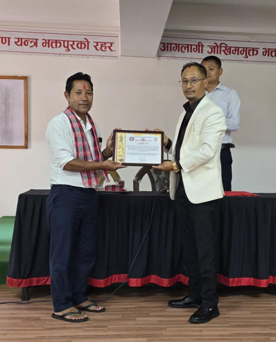 मिति २०८२ भाद्र २३ गतेका दिन जुद्ध बारुण यन्त्र कार्यालय भक्तपुरका कार्यालय प्रमुख श्री विजय प्रसाद धौभडेल ज्यूबाट आ.व. २०८१/०८२ मा कार्यालयले प्रदान गरेको जिम्मेवारी दत्तचित्त भई इमानदारी तथा बफादारीका साथ सफलतपूर्वक निर्वाह गर्नुभएको योगदानको उच्च कदर गर्दै कार्यालय सहयोगी श्री यज्ञ बहादुर तामाङलाई वर्ष सर्वोत्कृष्ट कर्मचारी-२०८२ को रुपमा नगद रु २५००/- सहित प्रशंसा पत्रबाट पुरस्कृत गरियो।